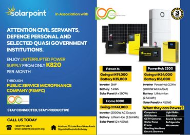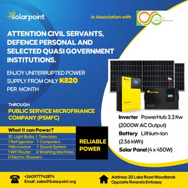 At Solarpoint Limited, we are committed to providing innovative and affordable energy solutions for all Zambians. Our mission is to support government efforts in ensuring access to green energy and decent housing for everyone.
